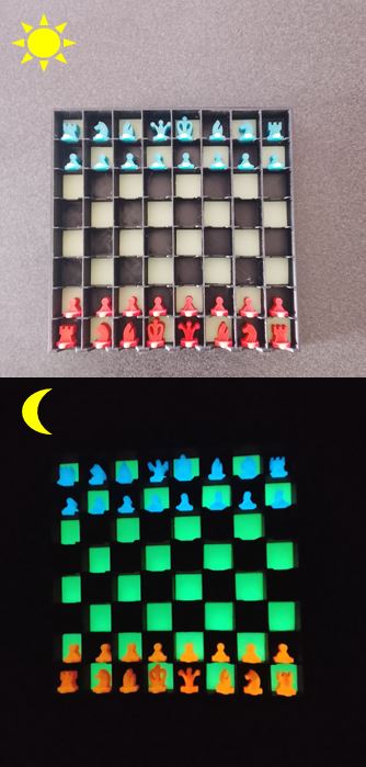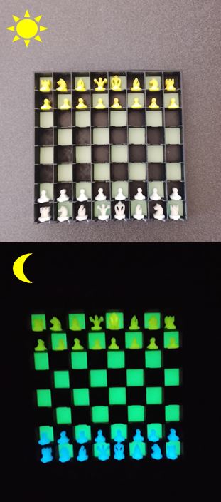 Le thermoplastique PLA utilisé est entièrement recyclable, renforçant l’engagement écologique de ce mini échiquier phosphorescent.